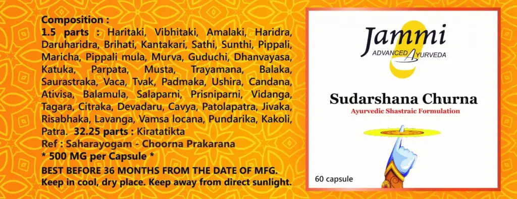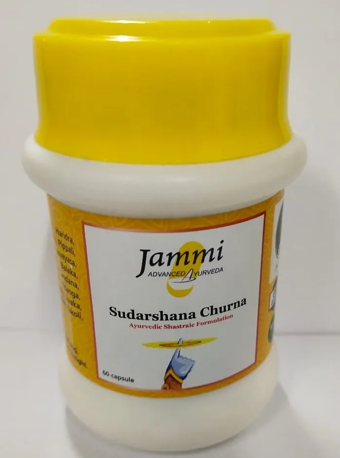Jammi’s Sudarshan Churna – Formulated as per the classical text Yoga Ratnakara. It contains 44 different ingredients that have immunomodulatory effects, antipyretic activity, anti-tussic properties, analgesic as well as anti-diabetic activities. Sudarshan Churna(Sudarshana Churna) is a potent immunity booster and is recommended for ALL diseases that have FEVER as a symptom. We recommend Sudarshan Churna as a prophylactic medicine and to also boost your immunity.